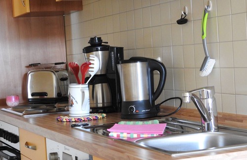 In the fully equipped kitchenette there is a fridge / freezer, electric stove, oven, dishwasher, kettle, toaster and coffee maker, dishes and cutlery.