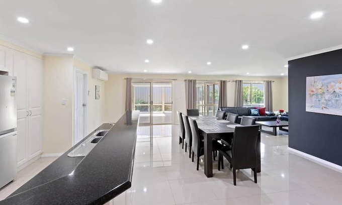 🏡 Spacious 4-bedroom Mount Gambier home for families & groups. Enjoy a fully equipped kitchen 🍳, dining for 8, private living room 📺, and a fenced backyard 🌿. Comforts include A/C ❄️, heating 🔥, ceiling fans, blackout blinds, bathtub 🛁, washer 🧺, wine glasses, and free parking 🚗. Close to parks, shops & local attractions! 🏡 Spacious Mount Gambier Family Retreat with Backyard Discover your perfect Mount Gambier getaway in this roomy 4-bedroom single-level home, ideal for families or groups. Combining comfort, convenience, and plenty of space, this retreat features a private living area, fully equipped kitchen, and a secure backyard for relaxing or play. ✨ Home Highlights 🚗 Parking & Private Entrance Enjoy hassle-free free on-site parking, including garage access, along with your own private entrance for a relaxed, secure stay. 🛋️ Living & Dining Relax in the open-plan living space with a comfy sofa, TV, and a dining table for 8 – perfect for shared meals, movie nights, or unwinding after a day of exploring. 🍳 Fully Equipped Kitchen Cook effortlessly with: • Oven, stove & microwave • Fridge & freezer • Coffee maker, kettle & toaster • Pots, pans, oil, salt & pepper • Plates, cutlery, wine glasses & baking sheet Whether it’s a quick breakfast or a full family dinner, everything you need is at hand. 🛏️ Bedrooms Four inviting bedrooms with fresh linens, blackout blinds, ample storage, and extra pillows ensure everyone sleeps soundly. Ceiling fans and ductless A/C keep the space comfortable year-round. 🛁 Bathroom & Essentials Unwind in the bathtub or take a refreshing shower with provided shampoo, conditioner, and body wash. Essentials like towels, toilet paper, and cleaning supplies are included. 🧺 Laundry For longer stays, enjoy the convenience of a washing machine, drying rack, iron, and hangers. 🌿 Backyard & Outdoor Living The fully fenced backyard offers a safe space for kids to play or for enjoying a glass of wine outdoors. With space for dining or lounging, it’s perfect for family gatherings or relaxation. 💪 Nearby Gym Access Stay active with access to a shared public gym nearby. 🌟 Why Guests Love It • Spacious single-level home, perfect for families & groups • Modern comforts: A/C, heating & blackout blinds • Private, fully fenced backyard 🌿 • Free on-site parking 🚗 • Central location near Mount Gambier’s parks, shops & attractions Whether you’re exploring the famous Blue Lake, enjoying local dining, or simply relaxing in comfort, this Mount Gambier retreat has everything you need for a memorable stay.