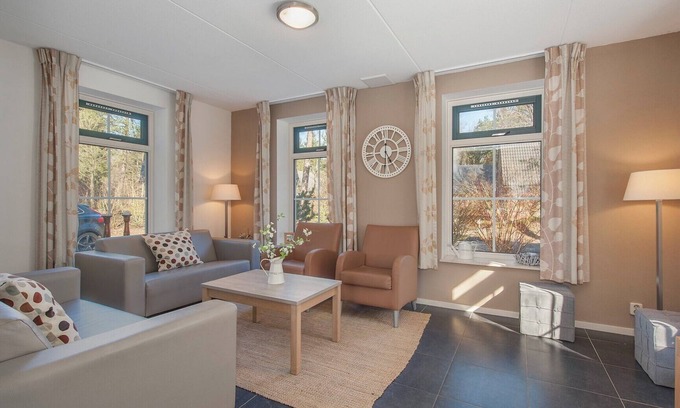 Type E bungalow Comfort 6+2 bedstee is suitable for up to 6 adults and 2 children. This detached bungalow at Summio Landgoed Het Grote Zand consists of two floors and has three bedrooms and two bathrooms.