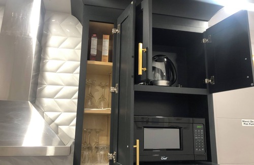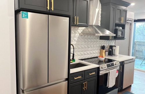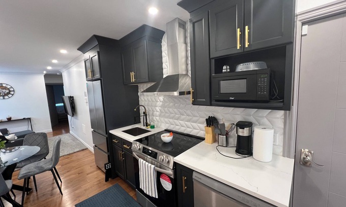 As you settle into this 2-bedroom, 1-bathroom rental, you'll find air conditioning and a desk. Bathroom amenities include a hair dryer, towels, and toilet paper. The kitchen is equipped with an oven, a stovetop, and a refrigerator, as well as a coffee maker, an electric kettle, and a microwave.