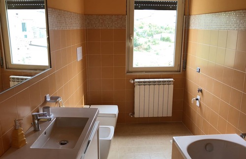 The apartment has a private entrance with parking space in front of the house, living room, kitchen with balcony, 3 bedrooms (2 double beds and a sofa bed), 2 bathrooms, terrace with table and umbrella overlooking the garden; possibility of barbecue and moments of relaxation.