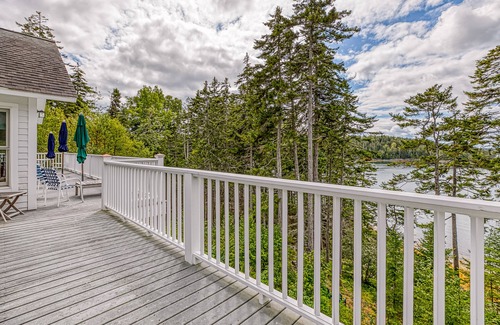 Admire breathtaking views of Sawyer's Cove toward Blue Hill Bay from this stunningly situated home on the western shores of Mount Desert Island, where you'll have an expansive wrap-around deck right near the water. Built in 2004, this bayfront home is modern, spacious, comfortable, and tucked neatly into the island's mature woodlands. You and your family will be treated to two complete levels of living space, two full kitchens to make cooking with your loved ones a breeze, and wonderful access to Southwest Harbor, Bar Harbor, and the incredible landscapes of Acadia National Park. A community tennis court is perfect for outdoor recreation.