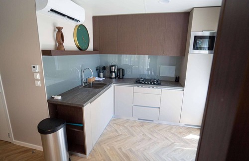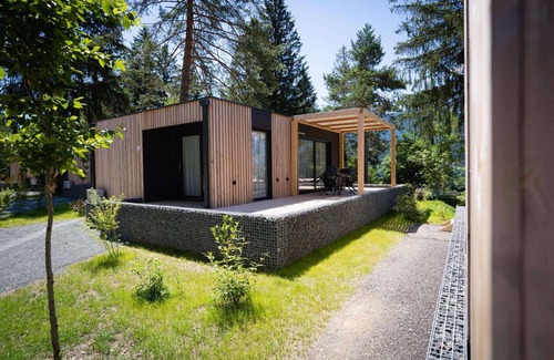 This detached, single-storey chalet is located in the beautiful, restyled holiday park Resort Pressegger See. It is located in the small hamlet of Presseggen, a stone's throw from the beautiful Pressegger See. The chalet is fully and comfortably furnished. Pleasant and friendly, the ultimate alpine feeling. Thanks to the high windows, you can enjoy the outside world. There is a nice living room with TV. In the open-plan kitchen, you will find, among other things, a microwave and a dishwasher. There are two bedrooms, one with a 2-pers. bed and one with two 1-pers. beds. The bathroom features a shower and toilet and there is also a separate toilet. For even more comfort, there also is air conditioning. The outdoor life takes place on the wonderful, (covered) terrace with garden furniture. There is parking for one car at the chalet. At holiday park Resort Pressegger, various mobile homes and chalets can be booked for two to six people.