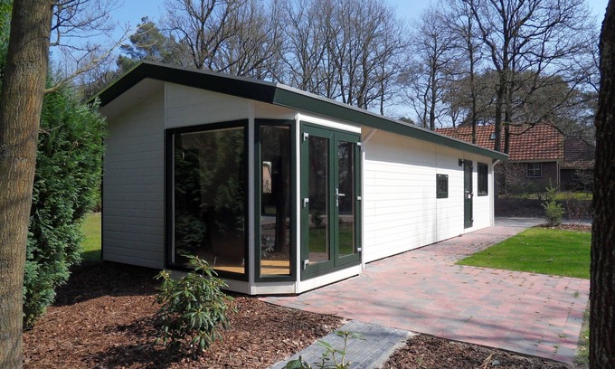 This detached, single-storey chalet is found in the wooded Landgoed Het Grote Zand holiday park, 1.5 km from the small town of Hooghalen. The lively provincial capital, Assen, is 11 km away. The comfortably furnished chalet has a living room with TV and an open-plan kitchen with dishwasher and microwave. There are two bedrooms. One has two single box spring beds that can be set up as double beds and the other has two single beds or a bunk bed. In the bathroom, you'll have a shower and toilet at your disposal. Surrounding the chalet is a garden with a terrace and garden furniture. There's enough space to park one car outside the chalet. At holiday park Landgoed Het Grote Zand, various holiday homes and chalets can be booked for four to twelve people.
