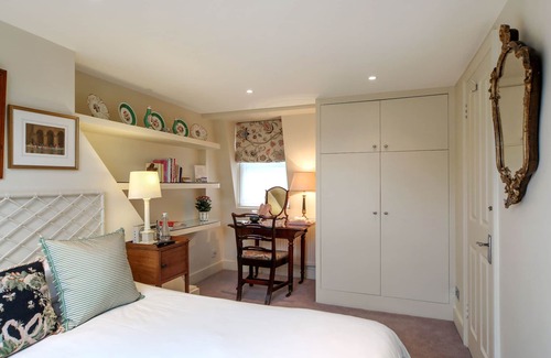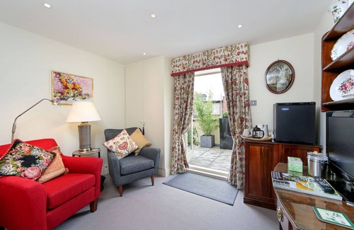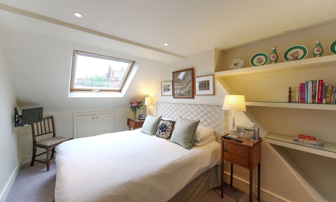 A beautifully furnished comfortable, chic bedroom with ensuite bathroom and with its own sitting room & roof terrace. TV's in both the bedroom & sitting room & fridge & coffee making facility. The house is in a quiet mesmerizing residential street with a mass of small cafes and restaurants nearby. Buses are within 4 minutes walk and go directly to Sloane Square, Victoria, Waterloo,. Knightsbridge etc. Easy access to Wimbledon for the tennis & Chelsea for the Flower Show and to Fulham & Chelsea Football grounds. A perfect place to stay for cultural, sporting, shopping or even after a hard day's work!