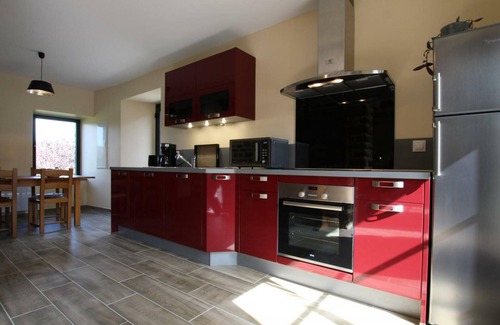 Duplex apartment on the 1st floor above another gîte. Living room with wood stove (TV, Wi-Fi). Kitchen (oven, induction hob, refrigerator with freezer, dishwasher, microwave, classic and Senseo coffee maker) with access to a private terrace. Shower room. Toilet. Bedroom 1 (140x190 bed). Upstairs, bedroom 2 (2 beds 90x200) and bedroom 3 (2 beds 90x190). Baby equipment on request. Electric heating at an additional cost. Sheets provided. Bathroom linen for hire. Cleaning service included. Private terrace. Garden furniture. Barbecue. Deckchair. Parking. Large shared courtyard. Shared laundry room (washing machine). Also on site is the gîte "Chez Clémentine" (4 people). This magnificent farmhouse has been completely renovated and converted into 2 comfortable gîtes. The owners, farmers, welcome you to this peaceful and relaxing estate. Just minutes from the large sandy beaches and the charming port of Granville, this is the ideal place to stay in the Bay of Mont Saint-Michel. The gîte "Le Logis" has a certain charm with its exposed stone wall and woodwork. From this level, the countryside view is even more beautiful, especially from the suspended terrace. Take the time to admire the superb granite steps that provide access to this level; it's a rare architectural feature on a farmhouse and has been perfectly preserved.