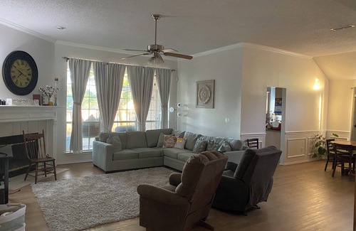 This tranquil house boasts 1 king bed, 1 queen bed, 1 twin bed and 1 full size air mattress; perfect for a pleasant stay. The split layout is perfect for peace and privacy in your master suite. Enjoy the luxury of a jetted jacuzzi bathtub & separate shower in the Master with a full second bath. With amenities like iron, hair dryer, and WiFi, guests can relax and unwind before playing a board game or watching a movie. Feel safe and secure with the Burleson Fire Dept. less than 1 mile down the street.