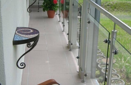 Z obu stron (północ i zachód) mieszkanie jest otoczone ciągłym balkonem o powierzchni 10 m².