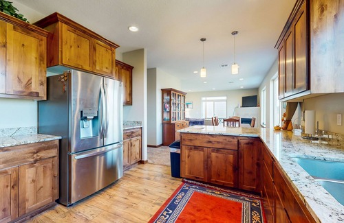 The home is designed with relaxation and practicality in mind. Gather in the cozy living room featuring a gas fireplace, Smart TV, and high-speed WiFi, perfect for streaming movies or staying connected. The fully equipped kitchen makes it easy to prepare meals, while the dedicated bunkroom provides a fun and comfortable space for kids. For your convenience, the home also includes a washer and dryer, ensuring a hassle-free stay.