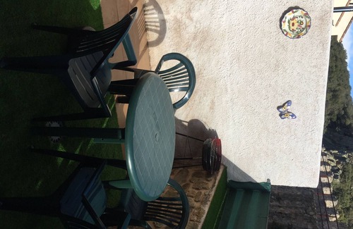 Already outside, the house has a patio, garden equipped with table and chairs, and next to it, a portable barbecue.