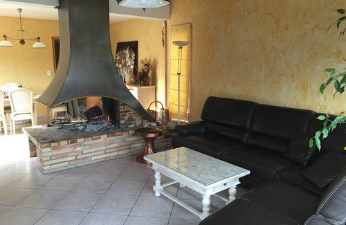 Living room 40m ° central fireplace 6-seat sofa TV table big screen wifi 4 bay windows fitted kitchen wc laundry room washing machine dryer one bedroom balneo bathroom