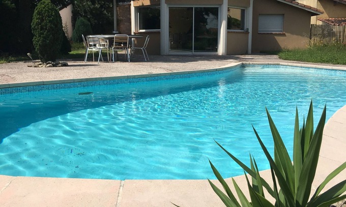 TOULOUSE Crois daurade ring road 06km towards Albi Montpellier and metro 900m a quiet street modern house with all its comfort on a wooded plot terrace 960m ° A PAILLOTE for 8 people and a table for 10 exposed sun swimming pool solarium barbecue lit