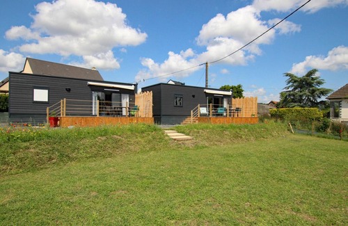 Large mobile home comprising a living room (TV, Wi-Fi) with a fully equipped kitchen (induction hob, oven, refrigerator with freezer, microwave, dishwasher, espresso machine) and dining area. 1 bedroom (double bed 160X200) with TV and private bathroom (toilet, vanity unit and shower cubicle). No washing machine. Baby equipment available on request. Sofa bed. All charges included. Sheets provided and beds made upon arrival. Household and bathroom linen provided. Cleaning service included. Wooden terrace. Garden furniture. Deckchairs. Shared unfenced grounds. A second mobile home on site. Parking. Shared shelter. In the immediate vicinity of the prefectural city, the hamlet of La Monterie is ideal for a green getaway on the outskirts of the city. This rural setting is indeed 2.5km from the shops and leisure activities of St-Lô. On a plot of land on the old family farm, Béatrice and her husband have designed two lightweight accommodations for vacations or short stays. These two unique mobile home-style accommodations offer all the comforts of a real country apartment. The kitchen is fully equipped, the bedroom is spacious and features a comfortable 160x200cm bed, and the shower is equally comfortable. Each cottage has a private terrace overlooking the lush green valley. There are numerous hiking trails, and you can venture from one coast to the other for beautiful excursions between the English Channel and Calvados. Outside of the summer, Nicolas offers music workshops (book with the owners).