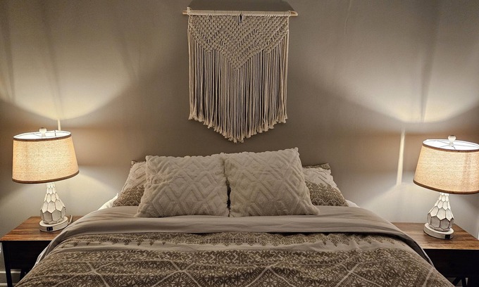 Guests will enjoy the privacy of the whole home and spacious back yard with a fire pit, seating area, picnic table, and grill. Includes a fully equipped kitchen, laundry/mudroom area, dedicated dining space, and large living room.