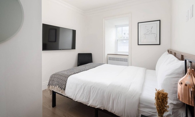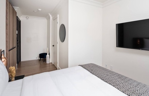 Opal Boutique Hotel is a charming establishment with 21 rooms ideally located in the heart of the Quartier des Spectacles and a step away from Sainte-Catherine Street. You will find the Berri-UQAM metro station just a two-minute walk away. You will appreciate the comfort of our rooms equipped with a kitchenette and a Nespresso coffee machine, as well as access to various services such as free Wi-Fi and self check-in. No elevator in the building.