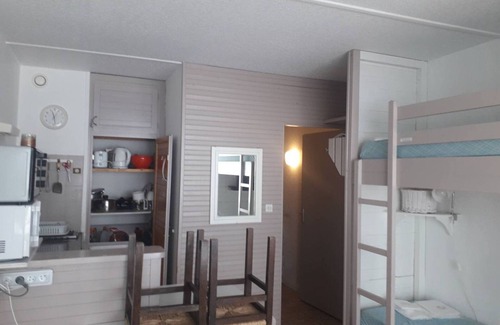 Studio for 4/6 people, on the 4th floor of the Super Arlas residence, with direct access to the shopping mall and the slopes. Residence with elevator from the parking lot. Your property is composed of a closed entrance, with a bunk bed, 2 beds in 90, the living room with fitted kitchenette and its dining area, a sofa bed for 2 people and a bunk bed, a bathroom with toilet and a balcony overlooking the slopes.
