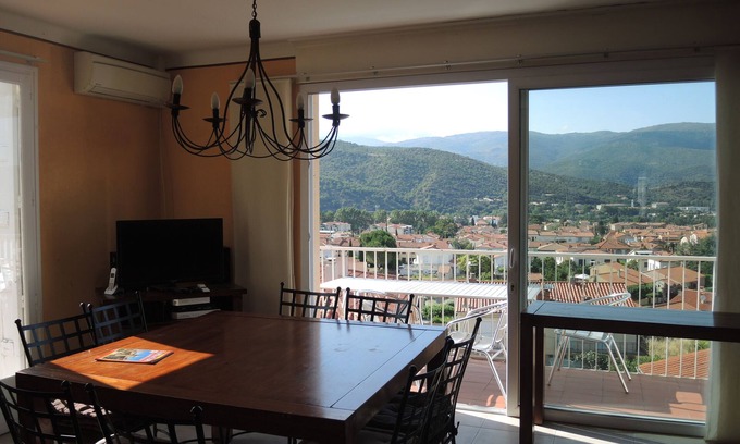 Our comfortable and well-equipped holiday home is situated halfway between the Mediterranean Sea and 5-6 Pyrenean Ski resorts. All this and a lot more can be reached within 30-50 minutes. The house contains six rooms on two floors, 135 square meters. It is great for family reunions but is also perfect for 3-4 couples travelling together, and is cozy enough for just two. A separate entrance to each of 2 floors. The house is cool in summer and warm in winter. Has a fenced garden with BBQ. We have a games room with a table for table tennis. The road from Perpignan is lined with apple, peach and apricot orchards that start blossoming in March - that's a view! The town centre, a 10-minute stroll, has a lot of restaurants - well worth visiting - and all the necessary shops, banks and ATMs, 2 very good supermarkets and one organic supermarket, selling a huge variety of whole foods and local organic wine. A large municipal swimming pool and tennis courts are in 1 km.