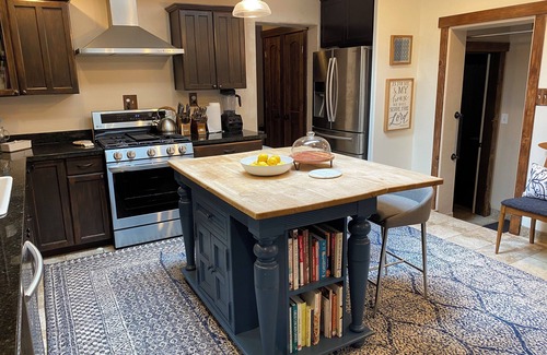 The farmhouse, originally built in the 1970's, has been added onto several times, and is newly redecorated throughout in a homey, mid-century modern eclectic style. Share meals in the large kitchen, hang out in the cozy family room, and sleep in comfortable beds. Each room is decorated in a unique style, making them fun, comfy spaces both day and night. We have chosen good quality mattresses to help you sleep your best.