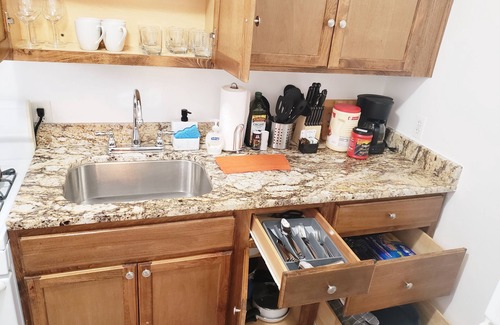 *Fully Stocked Kitchen + Microwave + Fridge + Coffe maker + Tea