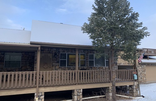 This Cabin home features two relaxing patios, a full kitchen, three bedrooms, two bathrooms and a loft area for full relaxation needs. Tv's are movie capable, bring your own or choose from one of the old classics on hand. Get away from the hustle and bustle and enjoy the fresh air. Close to many lakes and Sunrise Ski resort. Large Fireplace allows full comfort in the cold Winter months.