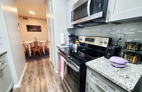 Free WIFI, Coffee and Parking. 55" 4K Roku TV w/Disney+ and Netflix included; Googl Home Mini; 600 sf w/Full Kitchen!