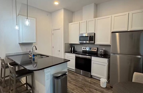 Welcome to our charming one-bedroom apartment — your peaceful getaway in the heart of the city. This thoughtfully designed space features a spacious living room perfect for relaxing or streaming your favorite shows, a fully equipped kitchen with modern appliances for home-cooked meals, and a clean, stylish bathroom. The cozy bedroom includes a comfortable bed and plenty of storage. Step out onto your private balcony to enjoy fresh air, morning coffee, or a glass of wine at sunset. Whether you're here for business or pleasure, this apartment offers the perfect balance of comfort, convenience, and privacy. Fast WiFi, fresh linens, and all the essentials are included to make your stay as comfortable and stress-free as possible. Ideal for solo travelers or couples looking for a relaxing home base.