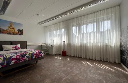 Featuring a garden, Commune88 EAST features accommodations in Friedrichshafen. Free Wifi is featured throughout the property and private parking is available on site. The accommodation offers airport transfers, while a bicycle rental service is also available. Offering a patio and city views, the spacious vacation home includes 6 bedrooms, 2 living rooms, flat-screen TV, an equipped kitchen, and 4 bathrooms with a shower. Towels and bed linen are offered in the vacation home. For added privacy, the accommodation has a private entrance and soundproofing. There is an on-site coffee shop. You can play darts at the vacation home. Guests can also warm up near the outdoor fireplace after a day of cycling. Messe Friedrichshafen is 2.5 miles from Commune88 EAST, while Casino Bregenz is 23 miles away. Friedrichshafen Airport is 1.2 miles from the property.