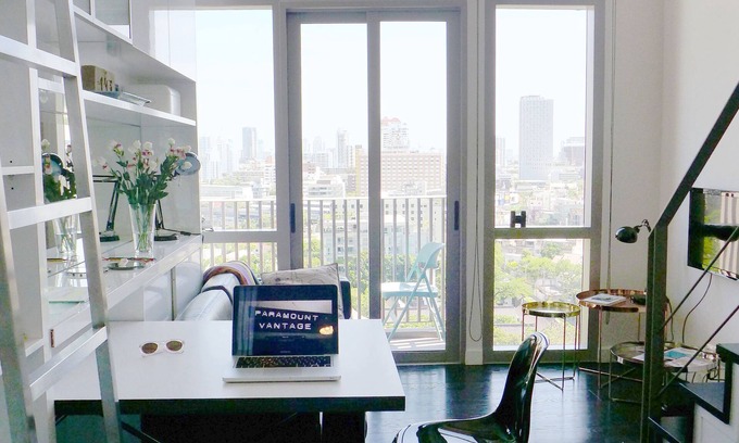My duplex apartment is in a fairly new luxury building in the hippest neighborhood of Bangkok. The compact loft space features soaring ceilings with urban city views and even a little balcony. It is comfortable for a solo traveler or a couple. The apartment is equipped with a full kitchenette, washer and dryer, microwave, water cooker, tableware, bedding, towels, and reliable, fast Wifi. It is discreetly furnished with design pieces. Effective blinds block out the sunlight when you want to get over your jet lag. .