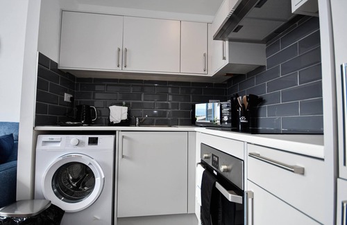 The modern interior offers a welcoming retreat for up to 2 guests to live in comfort. The open plan living area includes a modern, fully equipped kitchen with everything required to prepare home-cooked meals, a dining table, a comfortable sofa, and a smart TV. Make the most of high-speed broadband throughout the apartment, perfect for those that need to work, and stay connected on social media. The cosy double bedroom features a plush bed dressed in fresh hotel-quality linen, along with ample storage for your clothes and personal items. The modern bathroom is fitted with a powerful shower and comes complete with complimentary toiletries and soft, fluffy towels.