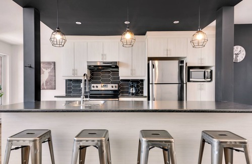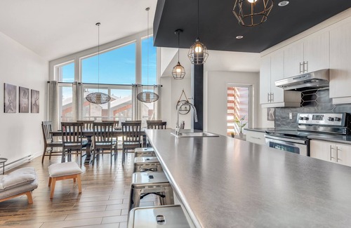 Perched at the top of the mountain, this row chalet offers you: Luxury, comfort and sunshine. Close to the Stoneham ski slopes and construction 2015, the cottage is ideal for a group of up to 12 people. Designed for your comfort and pleasure in mind, this fully equipped accommodation will seduce you. Spa, billiards, gas fireplace, huge windows and much more. Located in the heart of nature (but only 25 minutes from Quebec City) several outdoor activities are available to you, you will love!