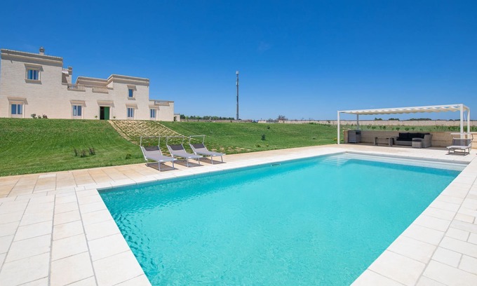 The origins of the construction of Masseria Ficalindia date back to the 1800s. Thanks to a recent restoration, the villa retains its original architectural features. Large garden with green lawn, swimming pool with solarium, sofas, sun loungers and gazebo, for relaxing in total tranquillity.
