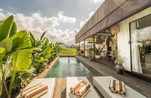 It benefits from a pretty equipped and done up kitchen, a dining room and a living room, but especially from an unobstructed view of the rice fields. The living space totally opened to a tropical garden will be the ideal place for relaxing moments by the pool or in the gazebo.