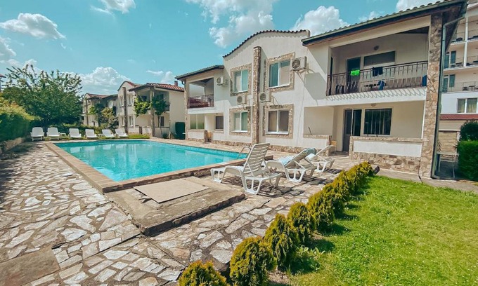 Offering inner courtyard views, Complex Sea & Sky next to the Beach! in Kranevo offers accommodations, a casino, and a garden. This property offers access to a balcony, free private parking, and free Wifi. The mountain views are a highlight at the villa's pool. The villa provides guests with a terrace, garden views, a seating area, satellite flat-screen TV, a fully equipped kitchen with an oven and a microwave, and a private bathroom with shower and slippers. A toaster, a fridge, and stovetop are also featured, as well as a kettle. At the villa complex, the units are equipped with bed linen and towels. During warmer months, you can make use of the barbecue facilities and eat on the private patio. For guests with children, Complex Sea & Sky next to the Beach! features outdoor play equipment. Guests can also warm up near the outdoor fireplace after a day of hiking. Kranevo Beach is a 11-minute walk from the accommodation, while Albena Central Beach is 0.6 miles from the property. Varna Airport is 19 miles away, and the property offers a paid airport shuttle service.