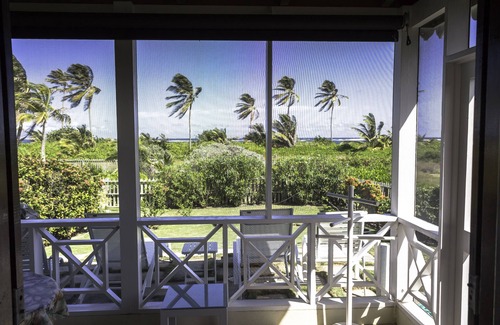 Perfect for honeymoon, romantic holiday, one or two person retreat CONCH SHELL COTTAGE is located on a secluded white coral sand beach with the privacy of a picket fence draped in flowering bushes and palms, and acres of beach, yet without being too isolated. The interior of CONCH SHELL COTTAGE, in Caribbean style vaulted ceiling, is bright, inviting and charming with original art by local artists, is immaculately clean and very well maintained. The screened-in porch has a table, chairs, and hammock while the patio has comfortable lounge chairs for sunning, relaxing and reading. You can see the beach, hear the waves curling over the pristine reefs and enjoy the magnificent clear evening sky with moonlight and incredibly bright stars. You will be met at the airport and brought by cab and water taxi to the cottage.
