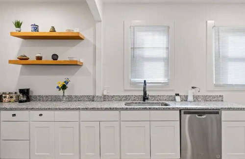 In lively Fountain Square district of Indianapolis, this cozy condo lets you feel the city's buzz. With its convenient 6-minute drive to the Gainbridge Fieldhouse, you'll be steps away from the heart of the action. Unwind in the comfort of your home-away-from-home, where you can enjoy the essentials like a well-appointed bathroom, towels, basic soaps, and a hair dryer. Stay connected with the provided WiFi, and keep your wardrobe fresh with the in-unit washing machine and dryer. Relax in the air-conditioned or heated space, surrounded by plush linens. Whether you're exploring the local sights or simply seeking a cozy retreat, this condo offers the perfect blend of comfort and convenience for your Indianapolis adventure.