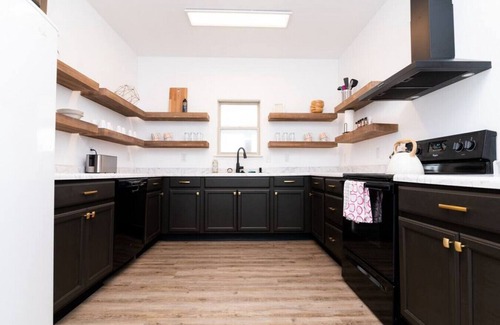 The fully renovated modern suite is designed around the needs of the mid to long-term traveler. Our suite features an open concept kitchenette and living area. The kitchenette comes with a coffee maker, microwave, toaster oven/air fryer, and mid-size fridge. Dishware, flatware, and basic kitchen items are provided. The private bedroom is located off of the living room and kitchenette. A walk-in closet with ample shelving and space is directly across from the bathroom featuring a walk-in shower. All linens are complimentary and provided in each room. For entertainment, enjoy high speed internet and 2 flat screen TVs. All guest have access to outdoor spaces, entry/lounge, co-working, fitness and entertainment center, and laundry. We have 2 separate buildings and 2 suites available at this property, hence, the pictures of both suites and buildings are in listing.
