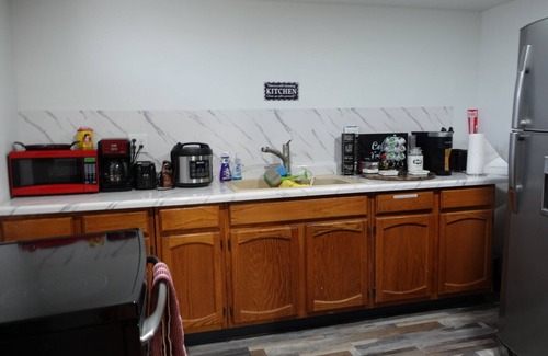 Fully accessible kitchen with coffee station.