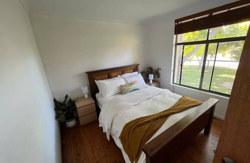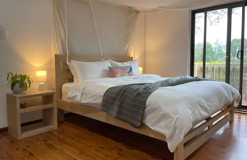 The house has 3-bedrooms, 1 bathroom home. There is a king, queen, double and a single floor mattress. The house is comfortable, quirky and stylish with raised cathedral ceiling in living spaces.