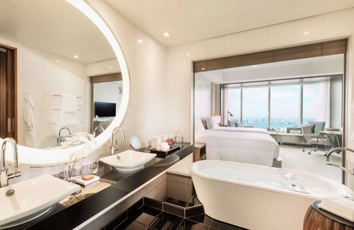Conrad Tokyo offers 290 accommodations with DVD players and minibars. Accommodations offer separate sitting areas. Beds feature premium bedding. 37-inch flat-screen televisions come with digital channels and pay movies. Refrigerators and coffee/tea makers are provided. Bathrooms include separate bathtubs and showers with deep soaking bathtubs and rainfall showerheads. Bathrooms are also outfitted with toilets with an electronic bidet, complimentary toiletries, and hair dryers.
