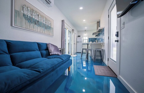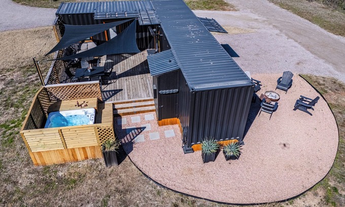 This memorable place is anything but ordinary. 40ft and 20ft container conjoined for a total of 480 sq ft of interior living space. Sleeps 6 comfortably! 5 minutes to Gruene Hall/Rivers and all that New Braunfels has to offer. Grill steaks on the fire pit and enjoy the peace and quiet.