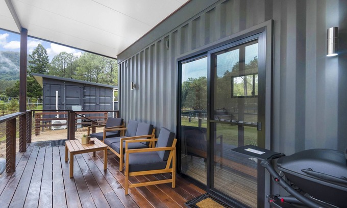Best-rates for the Contained in Nimbin starts from $153 per night with includes Bedding/Linens, Fireplace/Heating, Guest Services, Child Friendly, Parking, Balcony/Terrace, Bar, Entertainment, Barbecue/Outdoor Cooking, Internet, Kitchen, Air Conditioner, TV, Security/Safety With all other amenities included. Treehouse Rentals offers a wide range of treehouses, forest homes, cabins, and off-grid retreats, ensuring each traveler discovers their ideal nature getaway—be it a family adventure, a peaceful retreat, or a pet-friendly retreat with the whole group.