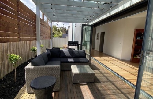Welcome to our stunning 4-bedroom contemporary beach house, just a leisurely 10-minute stroll from the beach and shops. This sun-soaked haven is tailor-made for those who love to entertain.
