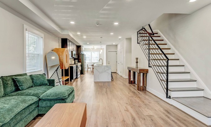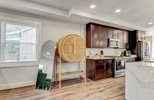 Welcome to your sunlit Woodridge sanctuary! This beautiful 4Bdrm/3.5bath home blends modern elegance with DC convenience. Enjoy an open-concept main floor with a chef's kitchen featuring marble counters, plus cozy living space with plush seating. Work remotely at the dedicated desk, unwind in spa-like bathrooms, or relax in your private fenced yard. Steps from Brookland restaurants and Catholic University, minutes to Metro and DC attractions. Perfect for families, groups, or extended stays!
