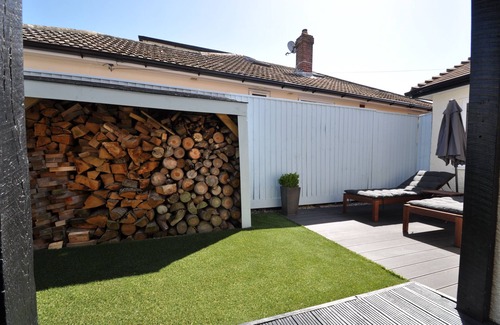 Immaculate 2 Bed Coach House attached to main house, a few roads from the beach. Contemporary with respect for character. There are 2 double bedrooms, one of which can be used as a twin or king. Master Bedroom has a luxury en-suite bathroom. The family kitchen is contemporary with quality appliances. Character Living Room with log burner. Southerly garden has quality artificial grass with a sun deck. ORP for 2 cars. Located on the Eastern boundary of Bournemouth by Christchurch with the River Stour nearby.