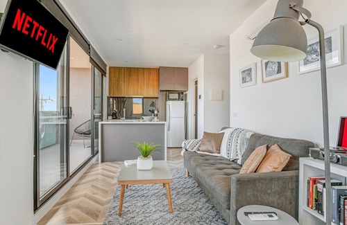 Enjoy a stylish experience at this centrally located apartment with local cafe's on your doorstep and the buzzing Thornbury neighbourhood next door. Once you park your car in the secure onsite parking, you can work from home with the fast wifi and move around the neighbourhood with ease on the 86 tram which is at your doorstep.