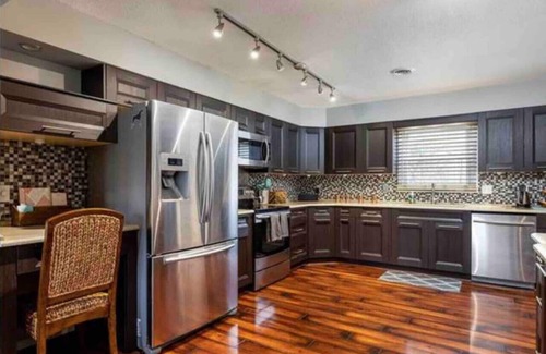 King suite w/walk-in shower. Beautiful, fully renovated home welcomes you with a bright completely new kitchen, all new stainless steel appliances. Fresh paint throughout interior and exterior. Brand new light fixtures. Newly updated bathrooms. New carpeting and new luxury flooring throughout. Beautiful yard, family friendly neighborhood. Excellent Wifi, Shopping including grocery stores, gas stations, restaurants are all a quick 5 minutes away."