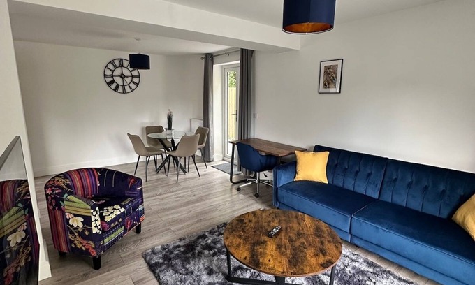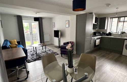 Modern 2-bedroom detached home, perfect for business travelers or families. First floor has a bedroom with 2 single beds and a bathroom. Ground floor has a double ensuite bedroom, open-plan living area, and fully equipped kitchen. Enjoy a private, fully fenced garden, parking for 2 cars, and smart self-access. Free Wi-Fi, desk, washing machine, fresh linen, and easy access to the A3 junction. Quiet neighborhood, close to amenities. Perfect base for work or leisure!