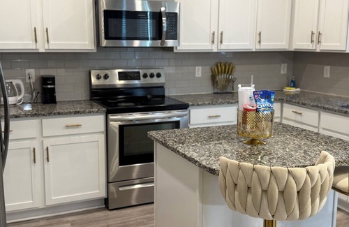 Our home is professionally cleaned and sanitized, ensuring your safety and comfort. Every surface is disinfected, and linens are freshly laundered. Relax in the spacious living areas, including a cozy master suite with an ensuite bathroom. The second and third bedrooms feature queen beds, while the fourth bedroom is perfect for kids with two twin beds.