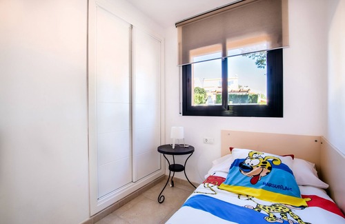 - A bedroom with 1 single bed (90 * 190), a bedside table and lamp, a large fitted wardrobe, and a second bed (90 * 190) which pulls out under the bed (note, this bedroom is more suitable for children )