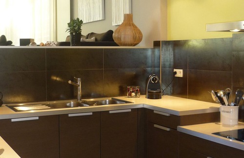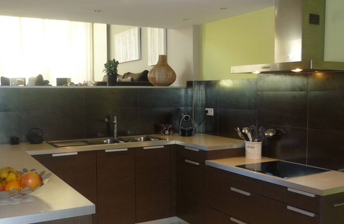 A fully equipped American kitchen, fridge, freezer, dishwasher, induction hob, oven, microwave, Nespresso coffee machine, kettle, toaster ...